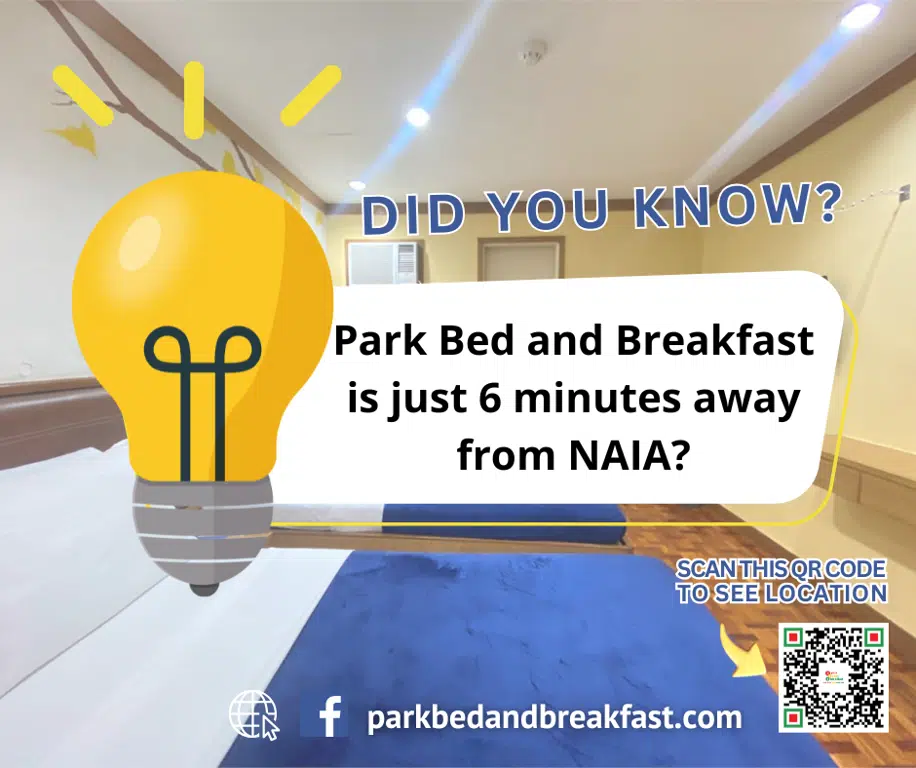 Isn't it cool that Park Bed and Breakfast Hotel is practically next door, making your travel days a breeze?𝙉𝙤 𝙢𝙤𝙧𝙚 𝙡𝙤𝙣𝙜 𝙩𝙧𝙖𝙣𝙨𝙛𝙚𝙧𝙨, 𝙟𝙪𝙨𝙩 𝙥𝙪𝙧𝙚 𝙧𝙚𝙡𝙖𝙭𝙖𝙩𝙞𝙤𝙣!You may also scan our QR code to check exact location on Google Maps.